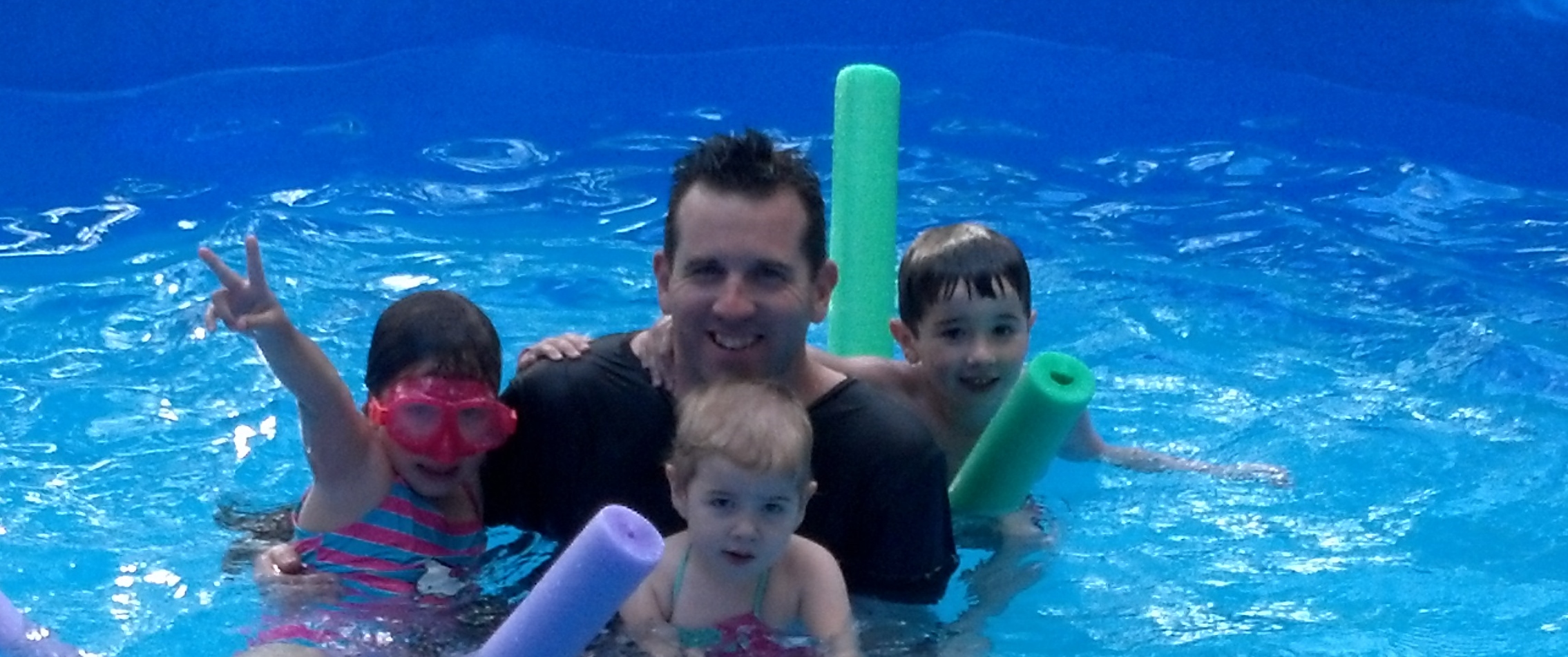 “Fill bottom with approx. 1 inch of water.  Turn off water and smooth out wrinkles in bottom liner.”  Said the instructions.  Simple right?  We were about to find out how uneven our little lagoon was.  I jumped into the pool to start the process.  I started by trying to smooth out the bottom of the pool with my feet.  Quickly realizing that was getting me no where fast I got down on my hands and knees to push out the wrinkles.  I soon discovered that what I was doing was the equivalent of bench pressing dead weight while doing squats.  Did I mention that I don’t go to the gym?  Additionally one side of the pool was becoming deep enough for possibly a good cannon ball while the other was sadly, dry.   The bottom of the pool was slippery and several times my hands and knees slipped and I would land face and stomach down in the water.  Did I mention I was fully clothed?  I’ll admit, I was ready to storm into the house never to return to the backyard again.  Looking up on the deck, however, I saw Coconut #1 giving water safety instructions to the younger two.  Complete with “What It Looks Like When You Are Drowning” actions.  How could I disappoint them?